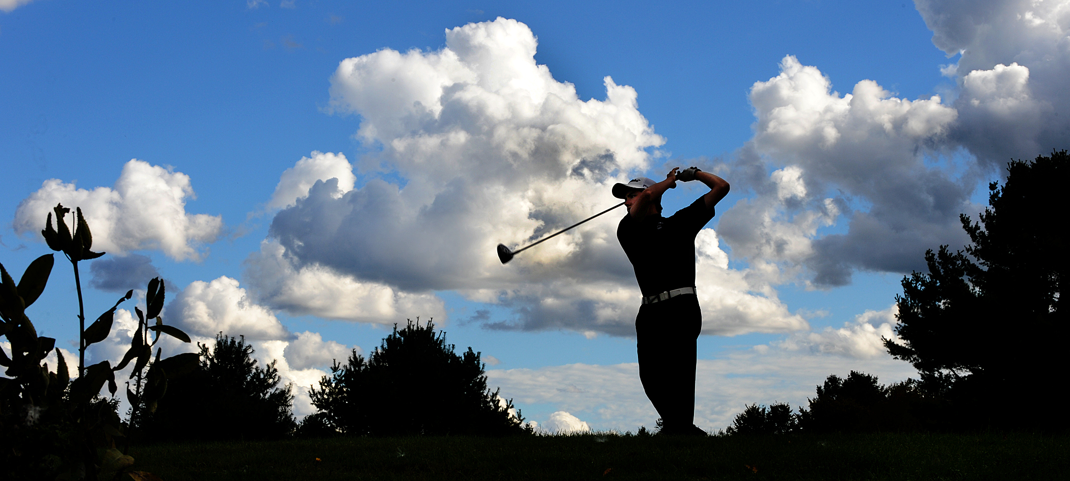 Monmouths’ D.J. McHugh tees off on the third hole at Springbrook Golf Club in Leeds during Monday’s four school match. Dirigo’s Robbie Babb hits a putt on the second green during Monday’s match at Springbrook Golf Club. Saint Doms #1 golfer Zac DeBlois follows through on his tee shot on the third hole at Springbrook Golf Club during Monday’s match. Taylor Morang of Winthrop chips onto the second green during Monday’s match.