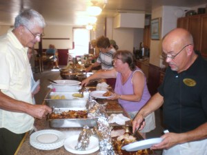 The West Minot Grange 42 will host the Hebron Historical Society Supper on Sunday, Sept. 30, from 4:30 to 6:30 p.m. The meal will include turkey with all the fixings and desserts, at a cost of $8 for adults and $4 for children under 12. Proceeds from food and raffles will benefit the society’s building fund. Pictured at the society’s August meal are, from left, Charles Tobie, Louise Knapp, Virginia Labbe and chef Daryel Duhaime, who will prepare this month’s supper as well.