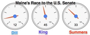 The Maine People’s Resource Center poll surveyed 856 registered voters. It suggested King would win with 43 percent of the vote, followed by Summers with 28 percent and Dill with 15 percent.
