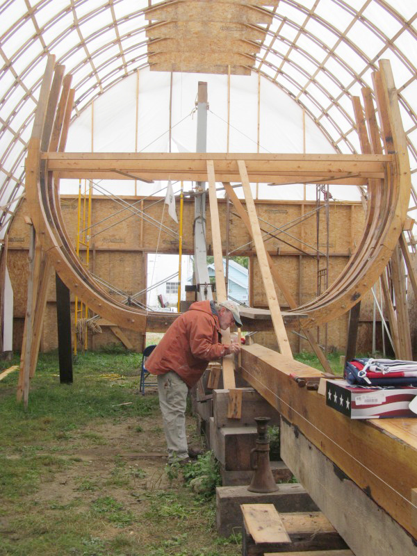 As donations trickle in, which in turn allows the organization to purchase expensive white oak and other materials, a core group of about 10 volunteers toil away on the project on Wednesdays and Saturdays. For local volunteer and technical advisor to the Maine’s First Ship Board of Directors Jay Coffey, the building process is as exciting as the completion will be.