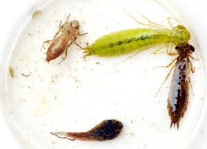 These dragonfly nymphs, top three, are a good sign for the Androscoggin River, naturalist Susan Hayward told students at the Edward Little High School River Day at the David Rancourt River Preserve in Lewiston on Friday. Science teacher Karen Boucher concurred: “Macroinvertebrates are a great indicator of the river.”