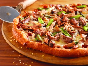BBQ Pulled Pork Pizza: Think past your basic pizza night with this sweet and savory take: top store-bought pizza dough with barbecue sauce, your favorite cheese, pulled pork and sliced green onions. Bake on high heat until the cheese is melted and the crust is golden brown.