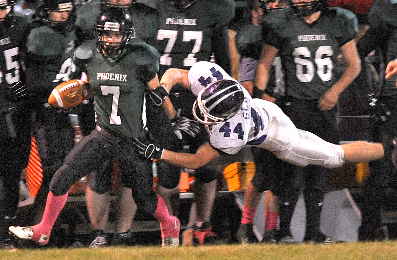 Spruce scored two plays into the third quarter on a 69-yard run up the left side by Vigue. The Phoenix were guilty of arm tackles and Marshwood (6-1) proved to be no fluke. On the ensuing possession, Roll scored on a 22-yard run, capping a 5-yard drive.