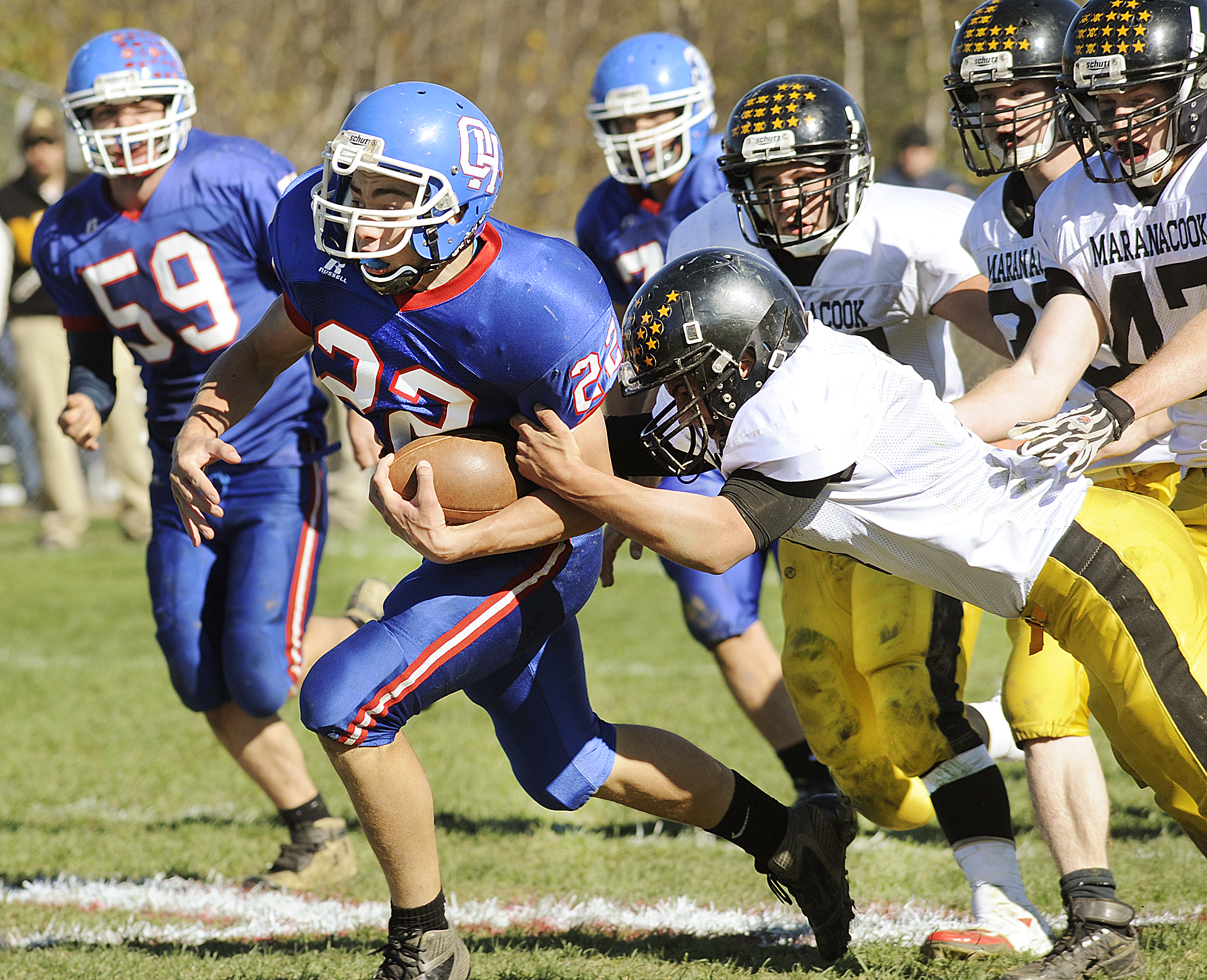 Mace intercepted a pass and Cody Collingwood collected a fumble recovery to keep Maranacook off the board in the first half.