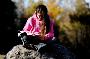 “I try to get studying in whenever I can,” said Stephanie Chase while waiting for her children’s school bus in Auburn on Tuesday. Chase is taking an Asian studies class at Central Maine Community College.