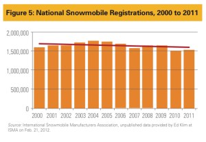 The study, conducted by University of New Hampshire meteorological researchers and released Thursday by the Natural Resources Defense Council and the nonprofit Protect Our Winters, highlights increasing frequencies of late openings and early closings of ski areas across the U.S. It also notes that snowmobile registrations in the U.S. have been essentially flat since 2000.
