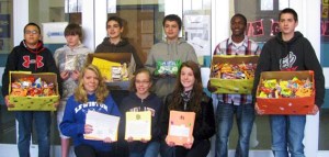 Teacher Sue Reny of Lewiston Middle School and the students of her eighth grade class became helping heroes this fall with their unique “Treats for Troops” program. Throughout October, the students collected more than 100 pounds of candy to be donated to servicemen and women on active duty overseas. To ship the many treats and letters from the students to the troops, Lewiston Middle School partnered with the Maine Oxy Supports the Troops program. Maine Oxy runs a donation drop box program in which the company collects donations and combines them to make large care packages to ship to troops. Maine Oxy was able to ship all 100 pounds of candy to multiple groups overseas. Shown with their candy collections are students Hassan Adan, Antonio Beaupre, Tyler Cote, Deni Federico, Darci Morgan, Tyler Conn, Caleb Wagg, Nick Tilley and Shawna Burch.