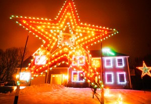 A Christmas light display by Steve Bang of 48 Vista Drive in Auburn brightens the expansive front lawn Tuesday. The display features a tribute to the victims of the Sandy Hook Elementary School shooting in Connecticut with photos of the victims in the center of the stars. The display is synchronized to music played through the radio station tuned to 88.1 FM. The light display will be on from 5:30 to 9:30 p.m. until New Year’s Day.