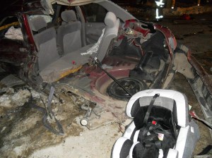 The truck collided with Blaney’s Toyota Corolla at the intersection, police said. Blaney’s infant son was flung from a child-safety seat that had been belted into the back seat, police said.