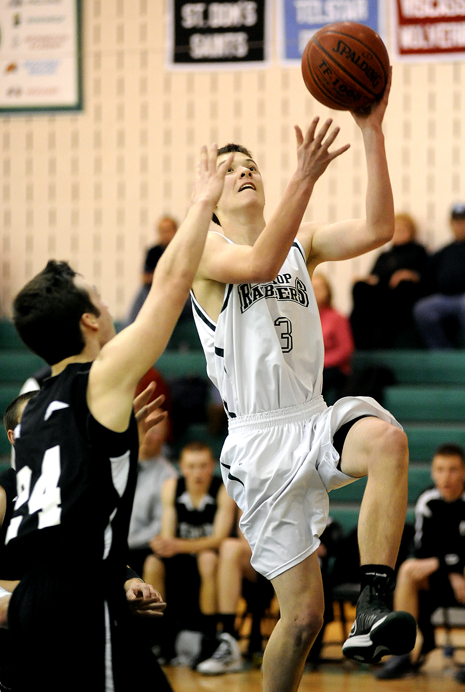 The Saints kept the game close through the first three quarters with center Eric Ulin scoring 12 points from underneath along with a couple of foul line jumpers. Matt Dyer connected on a pair of 3-pointers and added 10 points.