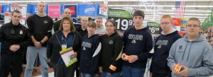 The day began at the Mexico Walmart where they were greeted by shift manager Denise Simmons. The whole team then got to work on their planned task of blanketing the Walmart alcoholic beverage aisle and football display at the front of the store with the fluorescent orange stickers. Although the stickers are just a small reminder that it is not OK to provide alcohol to minors it is a simple but critical message that it is in fact illegal to buy alcohol for a minor, with fines up to $2000 and a year in jail.