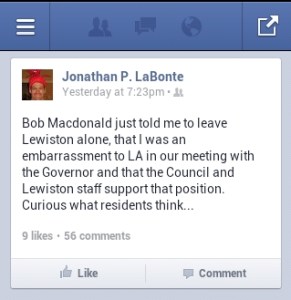 “I got word (Friday) that Bob was actively telling people that I had embarrassed Lewiston-Auburn, so I called him about 5 p.m. and he laid into me,” LaBonte said. “He ended up by saying I should leave Lewiston alone.”