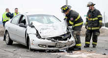 Gregory Hall, 43, suffered severe injuries to his leg when the 2002 Dodge Neon he was driving and a tractor-trailer truck collided.