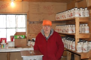 Tom’s grandson Randy gathers the sap that is not on the suction line.