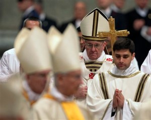 The Vatican has said these provisions were in keeping with Francis’ aim to not have his Masses go on too long. The Easter Vigil service under Benedict XVI would typically run nearly three hours. The new pope has made clear he prefers his Masses short and to the point: he was even caught checking his watch during his March 19 installation ceremony. Saturday was no different: The vigil ended just shy of 2.5 hours.