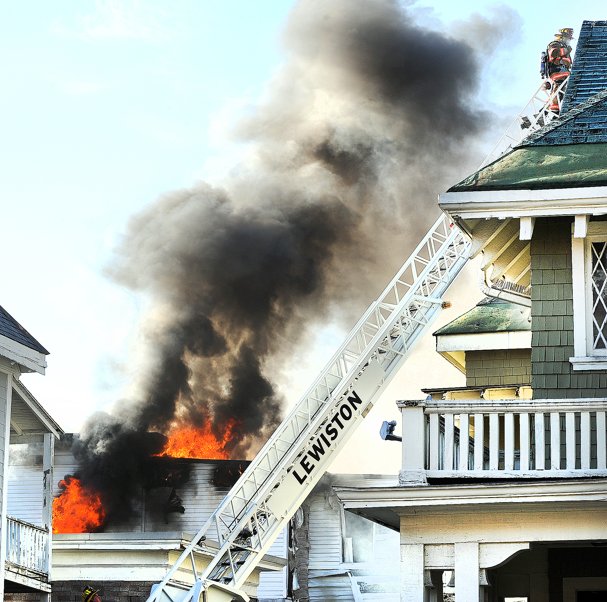 Firefighters did limited searches of the apartment houses, and at about 5:30 p.m., Lewiston Fire Investigator Paul Ouellette said a resident in one of the buildings was not accounted for, but that person may be in the crowd behind the barricades that surrounded the scene.