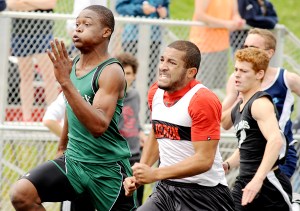 Aaron Halls was runner-up to Fitzgerald in the 100 and 200. The Greyhounds’ trio of Adams, Brandon Laurelez and Ben Pettingill went 2-3-4 and 3-4-5 in the two hurdle events, pocketing oodles of points.
