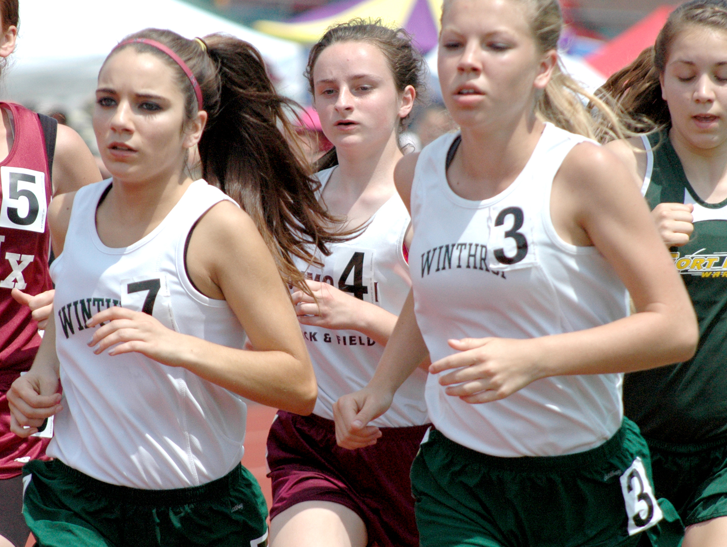 The competition between the two schools was tight throughout the afternoon, with the Red Riots finally prevailing as Abby Weigang, Kayla Marquis and Allison Pickering finished 2-3-4 in the pole vault to offset a state-record winning effort of 10 feet, 6 inches by Traip’s Kelsey Barnes in the meet’s final event to be completed.