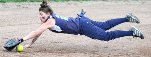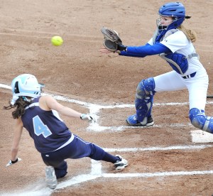 Dirigo got one back in the fifth. DeRoche walked, worked her way around the bases and scored on a wild pitch. She raced to the plate only to find the catcher waiting with the ball. She leaped up and over the crouched catcher, landed with a thump and touched the plate without being tagged.
