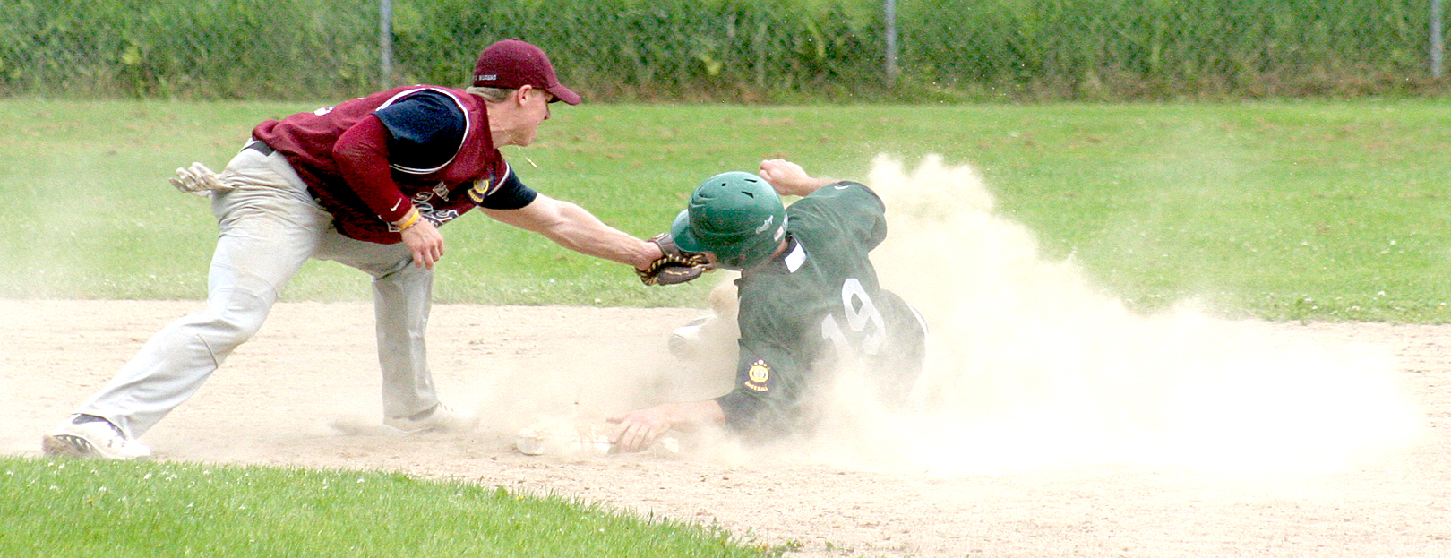 Game 2 started much the same way, with Ryan Riordan getting the call for Pastime and Lew Jensen taking the hill for Rogers. It was scoreless again through 4 1/2 innings before John Simpson turned a walk and stolen base into a run on a Nate Blais single for a 1-0 Rogers lead.