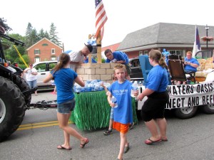 Members of Living Waters Assembly of God Church in Farmington distribute bottles of water during the Fourth of July parade along Main Street in Farmington on Thursday.