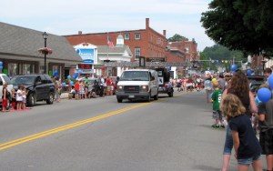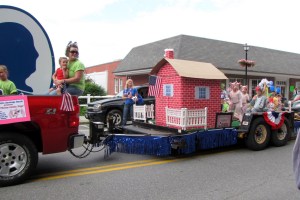 Franklin Savings Bank’s Fourth of July float portrays the story of “The Three Little Pigs” in Farmington on Thursday. The theme for the Rotary Club-sponsored parade was a favorite book.