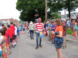 Waldo, portrayed by Reid Breckner, makes his way through the crowds lining downtown streets for Farmington’s Fourth of July parade Thursday.