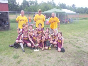 The Greene Rascals captured the tournament title in the AK U10 Girls Softball League at the end of the season. They also finished first place in the regular season. They had a combined record of 13 wins and 2 losses for the year. Members of the team include, front row left to right: Morgan Bilodeau, Eve Martineau, Riley Theriault, Leah Maheux, Shea Marston; middle row: Olivia Morel, Amber Lafrance, Kendra Crosby, Brielle Morin, Carlie Leavitt; back row: coach Norm Martineau, coach Jeff Bilodeau, and head coach Scott Maheux.