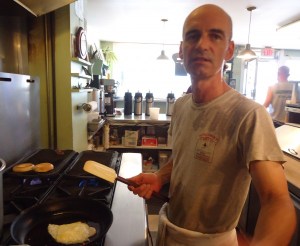 Frying eggs at the stove, OhNo’s head chef John Martovich looked at the scorching situation philosophically.