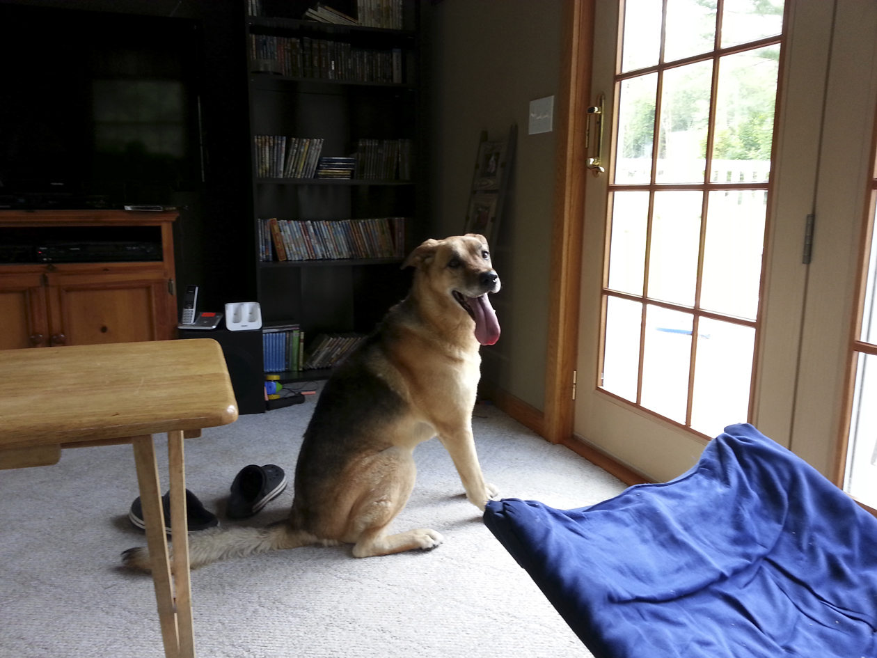 Jessica Philippon of Lewiston has a shepherd/St. Bernard mix who weighs 133 pounds. They named him Max.