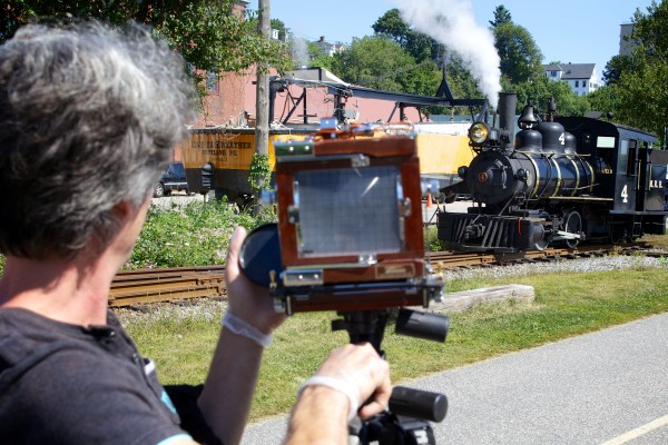 On Saturday, he set his eye on the nearby steam engine preparing to depart and raced to the conductor to learn how long he had to take the shot. He set his 4-by-5 view camera on a tripod and peered through the lens.