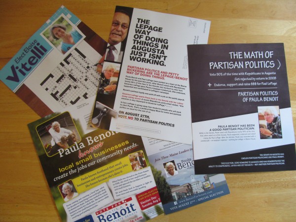 “The LePage way of doing things in Augusta just isn’t working,” reads a mailer paid for by the Maine Democratic Party. “Partisan politics and petty bickering are the LePage/Benoit way of doing things. … Gov. LePage wants Paula back in the Senate with her rubber stamp voting record.”