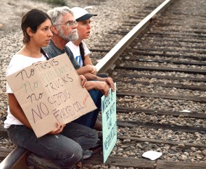 A few seconds later, it happened. Officers moved in. The trio on the tracks refused to move. There was the solemn snick of handcuffs clamping shut and it was official: They were under arrest on charges of criminal trespassing.
