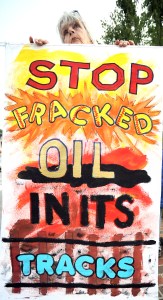 One of the Earth First! members explained to her the dangers of crude oil. Trains running through Maine carry it from the Bakken oil fields of North Dakota, the protester said. Bakken oil is “fracked” — extracted by blasting a high-pressure, toxic cocktail deep into the ground to release the oil from shale rock, polluting air and water in surrounding communities, the activist said.