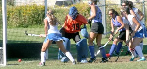LITCHFIELD — With dirt flying, legs shifting and sticks swinging, the goalmouth of a field hockey cage can be a dangerous place to ply a trade.