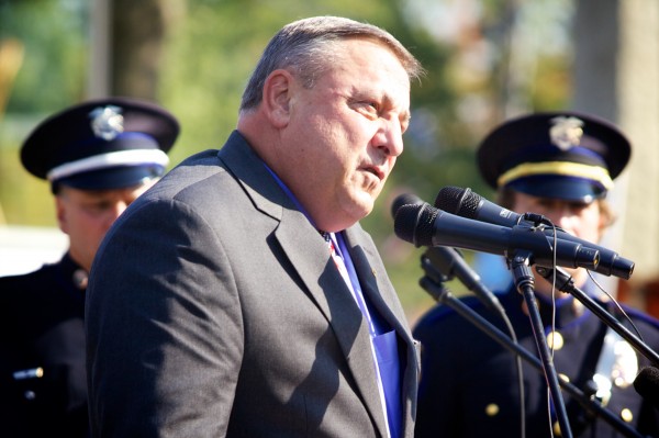 “From that day we’ve been fighting a war on two fronts. Now we’re down to one,” he said to a crowd gathered at the 9/11 Memorial on Main Street. “I ask you all this morning, let’s pray real hard so the people in Washington make the right decision. We do not want our military to go into battle. 9/11 stays in our hearts … let’s pray that people come to their senses and we can have peace on earth.”
