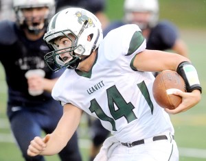 And Leavitt made enough of those plays to survive. First, Nate Rousseau’s 3-yard run and Nate Coombs’ point-after rush supplied a lead with 10:04 remaining. Then late interceptions by Rowland and Levi Morin capped a mostly sensational night for the defense in a 14-7 Western Class C football victory.