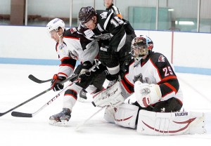 Returning forward Brenden Shinnimin was a bright spot for the Pirates on Saturday, registering a goal and an assist. His linemate, Brandon McMillan, had a pair of assists.