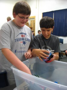 Dirigo High School freshman Kyle Morrison was more than happy to help the younger boys. He likes robotics, too, and had participated in the after-school program last year while in middle school.