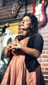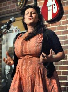 Here comes Addie Johnson, an energetic blonde in tights and a denim vest. She wears her hair in a ponytail and she’ll be the very first to use a popular swear word to make a point. Her story? Hilarious. Johnson tells of learning to play the trombone as a school girl even though she had absolutely no interest in doing so.