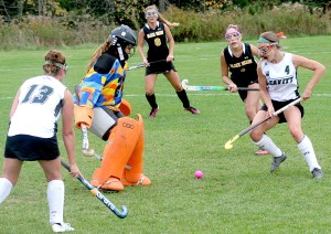 But the Hornets’ well-oiled machine proved too much for Maranacook to handle on weakened legs in the second half. Kierstin Leclerc banged home the first of her two on the day six minutes into the second half to expand the home team’s lead to 3-0. Emma Fournier, Leclerc, Bri DeGone and Sadie Royer then all scored in a six-minute stretch to blow the game open.