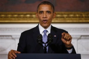 “Some of the same folks who pushed for the shutdown and threatened default claimed their actions were needed to get America back on track,” he said in remarks in the State Dining Room.