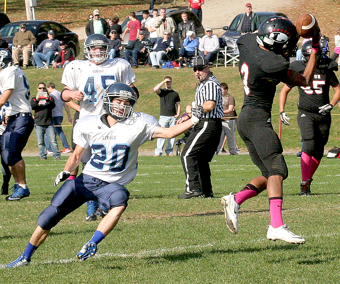 “We knew Brett Beauchesne could handle his man and we wanted to hit him on an out route on the other side,” Dirigo coach Dave Crutchfield said. “But too much pressure was coming and we didn’t run any good routes on the other side. The number one option didn’t happen and the number two option wasn’t there and that’ my fault.”