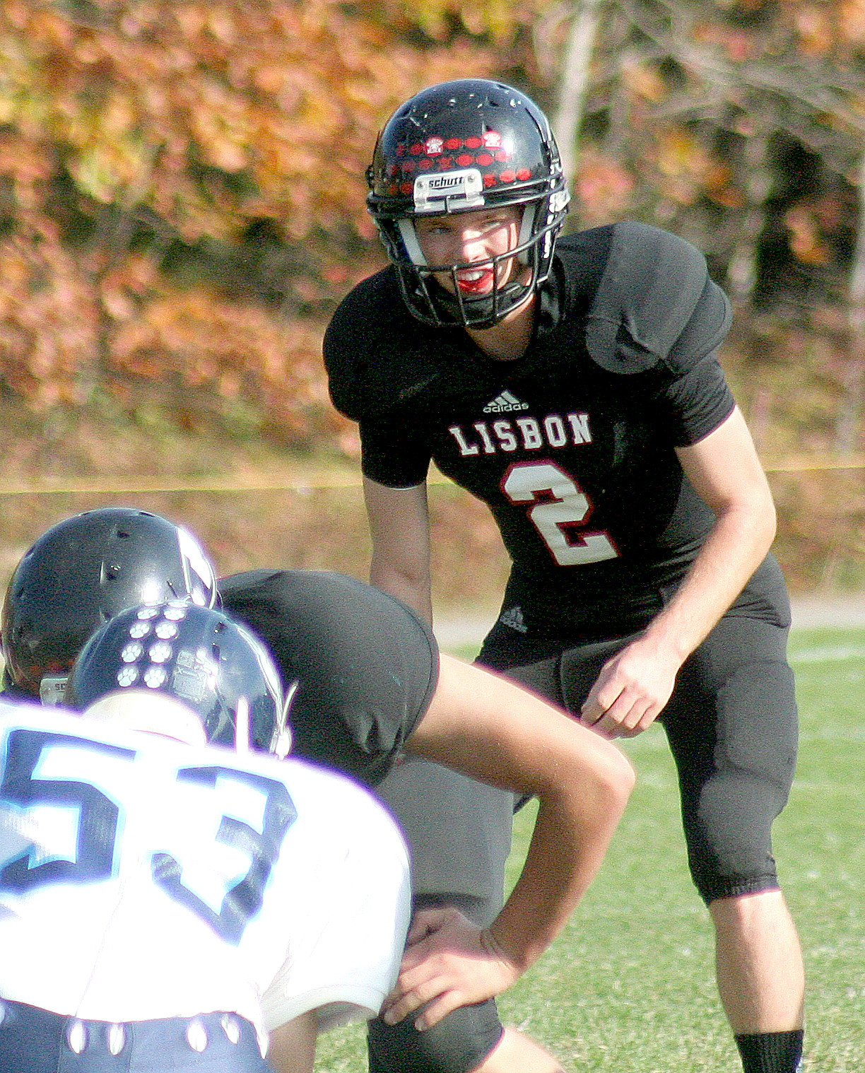 On fourth down, Robinson rolled right under pressure and saw his primary receiver, Brett Beauchesne, covered. He threw back left into the end zone where Lisbon’s Austin Proctor was waiting for the interception.