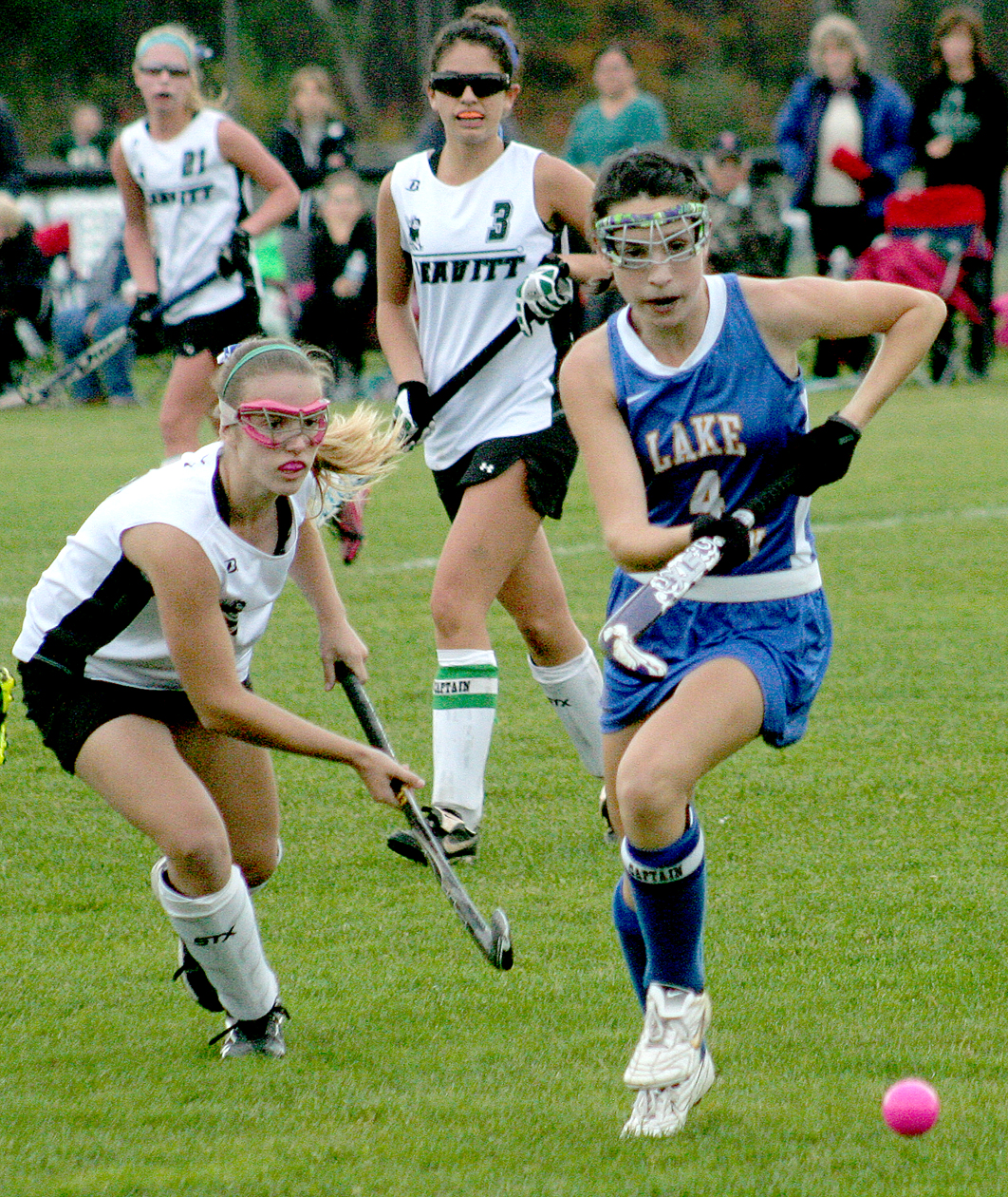 Leclerc scored the second goal of the game for Leavitt with 6:20 to play in the opening half, converting a bouncing ball into a hard shot from the left side of the circle that found its way past Lake Region keeper Meghan VanLoan.