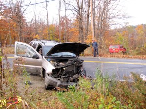 INDUSTRY — A Farmington driver complained of pain but was not seriously injured in a two-vehicle crash on the Industry Road on Tuesday afternoon.