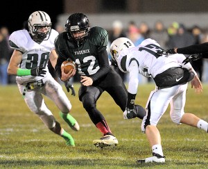 Leavitt scooped up a Spruce Mountain miscue at midfield on the next Phoenix play. Rousseau had seven carries on the ensuing short drive, including the 5-yard scoring jaunt.