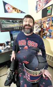 He wore a Red Sox shirt, Red Sox-patterned pants. His room at d’Youville Pavilion had three different Red Sox pennants on the walls, New England red and blue everywhere.