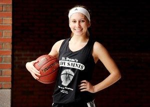 Pomerleau led the Mountain Valley Conference in scoring last year with 20 points per game as well as nearly 5 assists. That was despite times last year when the Saints were so shorthanded because of injury that Pomerleau was double and triple teamed. Pomerleau was the only Saint to play in every St. Dom’s game last year. She also averaged five steals per game, which likely would have led the league if the MVC kept those stats.