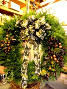 “Over the years, choices in materials have changed to include glitter and matte finishes, colors including burgundy, pink, bronze, every shade of green, even tangerine. The natural pine cone now can be white tipped, heavily or lightly glittered, silver and gold. I have one client who comes every year to customize a wreath; then we make five and she sends them to her family members for Christmas,” said Blais.